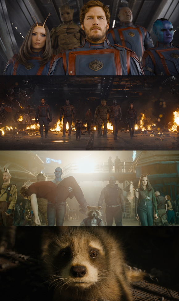시리즈의 마지막 편 역시 가디언즈 멤버들의 유쾌한 케미와 가슴 찡한 우정이 돋보인다. 특히 이번 편의 주인공으로 알려진 로켓의 숨겨진 과거가 플래시백 형태로 공개된다. 죽음의 위기에 처한 로켓을 구하기 위해 나선 동료들의 스펙터클한 모험 속 로켓이 받았던 학대와 고통이 그려진다. 그리고 로켓에게 큰 위안과 기쁨을 줬던 또 다른 친구들, 로켓이라는 이름이 만들어진 계기 등도 담겨 관객들의 심금을 울린다.