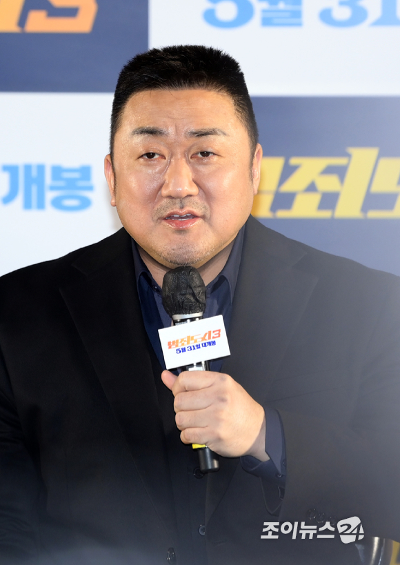 마동석은 9일 오전 서울 메가박스코엑스에서 진행된 영화 '범죄도시3'(감독 이상용) 제작보고회에서 "안내말씀 드리자면 '범죄도시3'는 15세다"라고 강조했다.