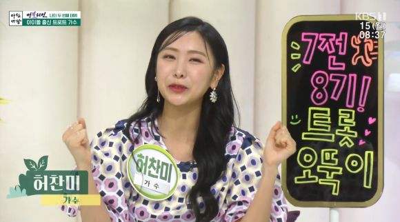 '아침마당'에 '7전8기'의 아이콘 허찬미가 출연했다. 15일 오전 방송된 KBS 1TV '아침마당'에 아이돌 출신 트로트가수들이 총출동했다. 이도진, 성민, 강혜연, 이대원, 허찬미가 출연했다. 아이돌 출
