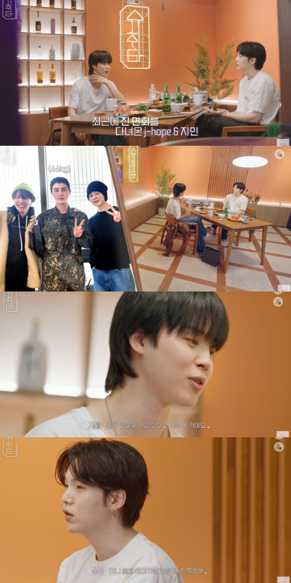지민은 최근 군 복무 중인 진의 면회를 다녀온 에피소드를 공개했다.