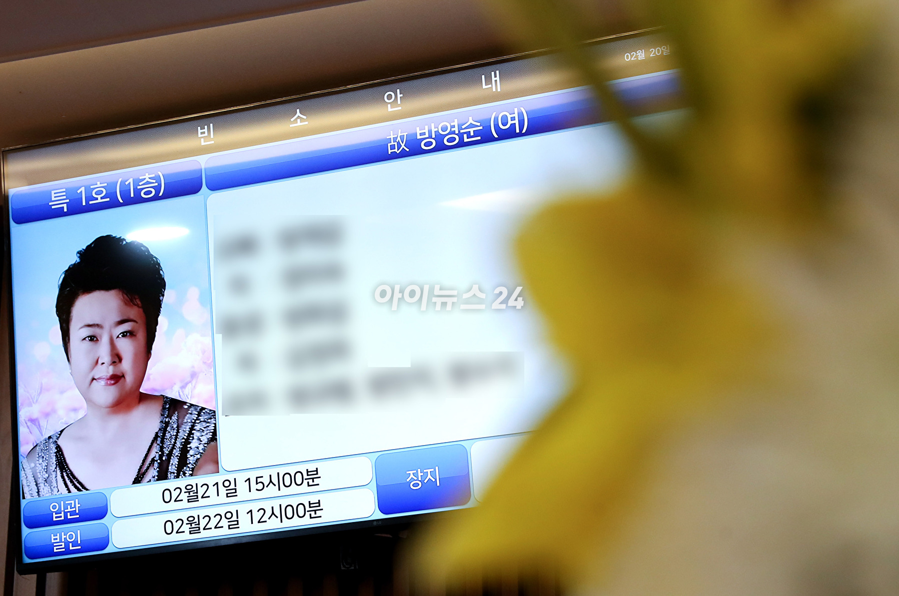 가수 방실이(본명 방영순)의 빈소가 20일 오후 인천 강화군 참사랑장례식장에 마련되어 있다.