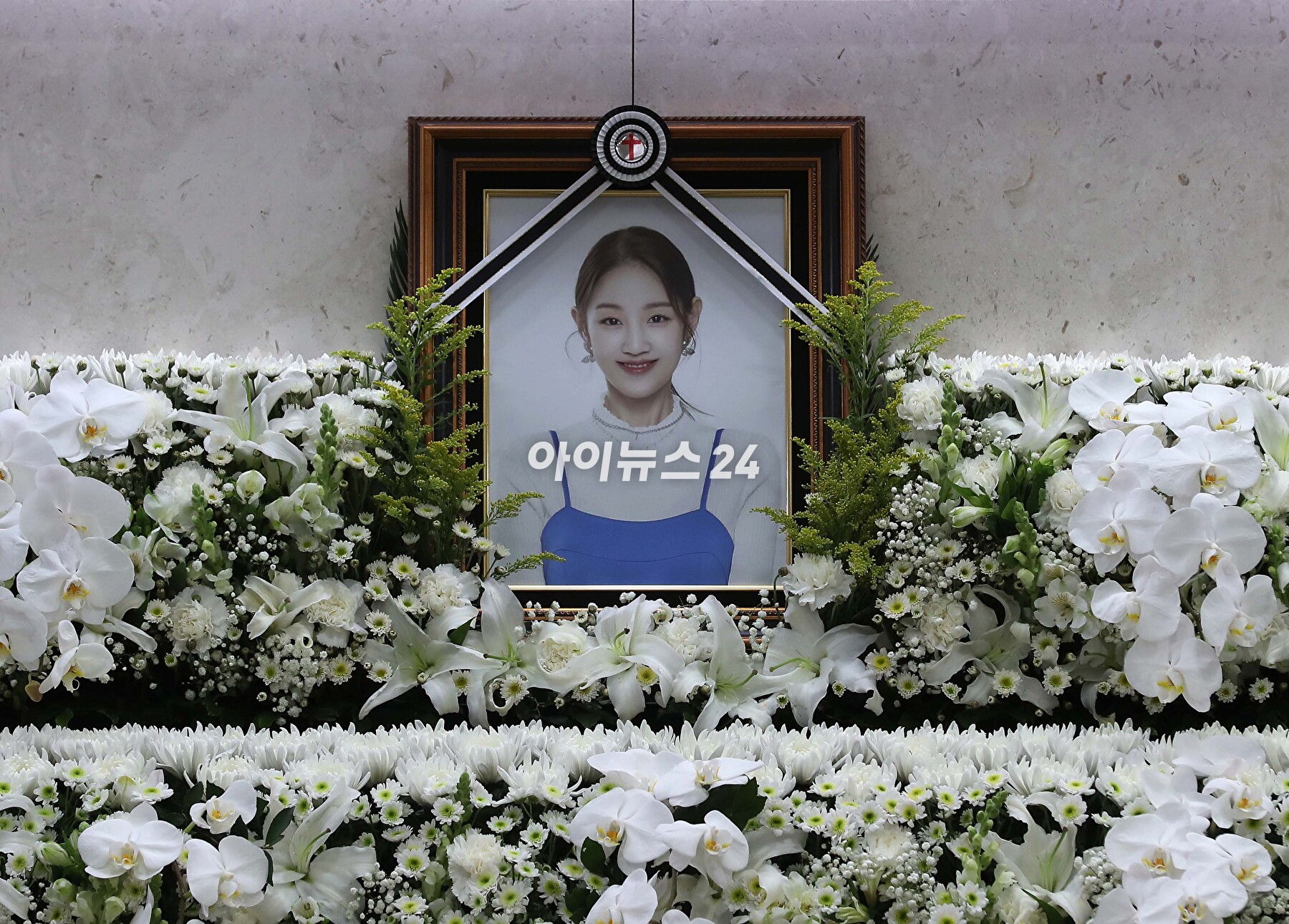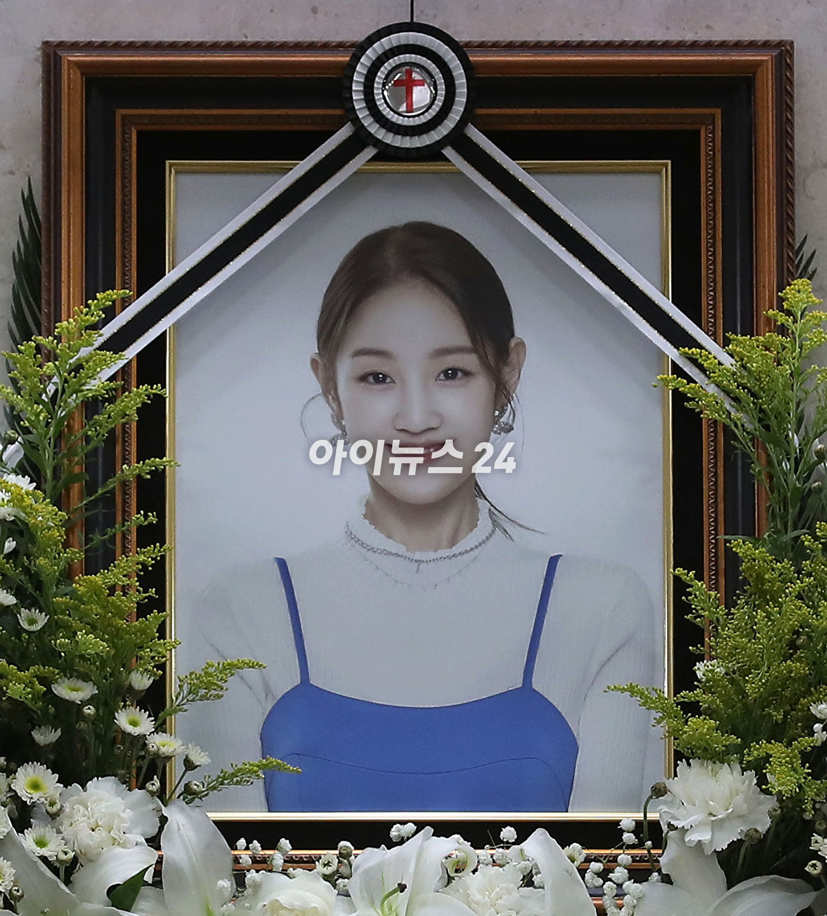 가수 고 박보람의 빈소가 차려진 15일 서울 송파구 서울아산병원 장례식장에 고인의 영정사진이 놓여 있다. [사진=공동취재단]