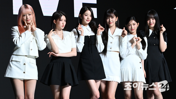 그룹 아이브가 10일 오후 서울 영등포구 여의도동 콘래드 호텔에서 열린 첫 번째 정규 앨범 '아이해브 아이브(I've IVE)' 발매 기념 기자간담회에서 포즈를 취하고 있다.